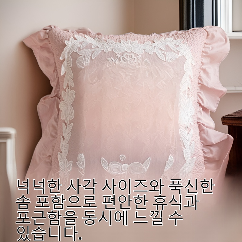 ● 사랑스러운 하트 디자인과 2단 레이스 디테일로 침실이나 거실에 포인트를 주는 감성 인테리어 쿠션입니다. ● 넉넉한 사각 사이즈와 푹신한 솜 포함으로 편안한 휴식과 포근함을 동시에 느낄 수 있습니다. ● 고급스러운 레이스 마감으로 퀄리티가 뛰어나며, 선물용으로도 손색없는 특별한 아이템입니다. ● 내추럴한 색감과 차분한 분위기로 다양한 공간에 자연스럽게 어울려 데코 효과를 극대화합니다.