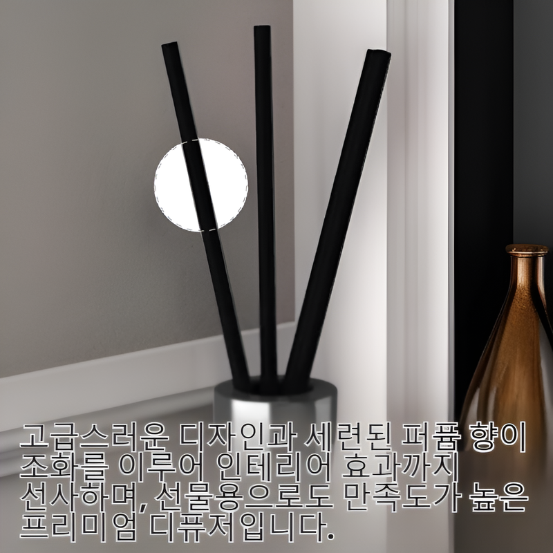 ● 고급스러운 디자인과 세련된 퍼퓸 향이 조화를 이루어 인테리어 효과까지 선사하며, 선물용으로도 만족도가 높은 프리미엄 디퓨저입니다.